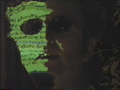 "Let's take a close look at GRAMMATRON: the head is arranged such that its hairs, oiled and finely twisted into thick, tight dreadlocks, are programmed to rise up from the head. Wave upon wave of thick, neonated hair are extending out toward the heavens in search of some electric connection. Each hair is a necessary part of the creature's consciousness, one for balance, one for judgment, one for articulation, one for meaning-making, one for thought-destroying, one for happy nullifying, one for excremental rambling, and so on. All of these strands are called Hairs of The Creature and no beauty salon can keep them in order. The bush they form is a Medusa-like Rastafarian headtrip that celebrates a radical disorder known to touch on all aspects of this world the creature lives in."
